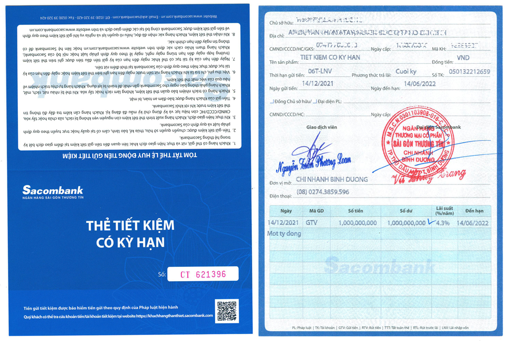 ➡ Sổ tiết kiệm của khách hàng được gửi đến Ngân hàng từ đầu năm 2022 hoặc 2025. Nếu khách hàng có nhu cầu mua sổ tiết kiệm với thời gian mở sổ trước đó, có thể liên hệ với chúng tôi qua : 0987 309 309 - ( Giám Đốc Tài Chính ).